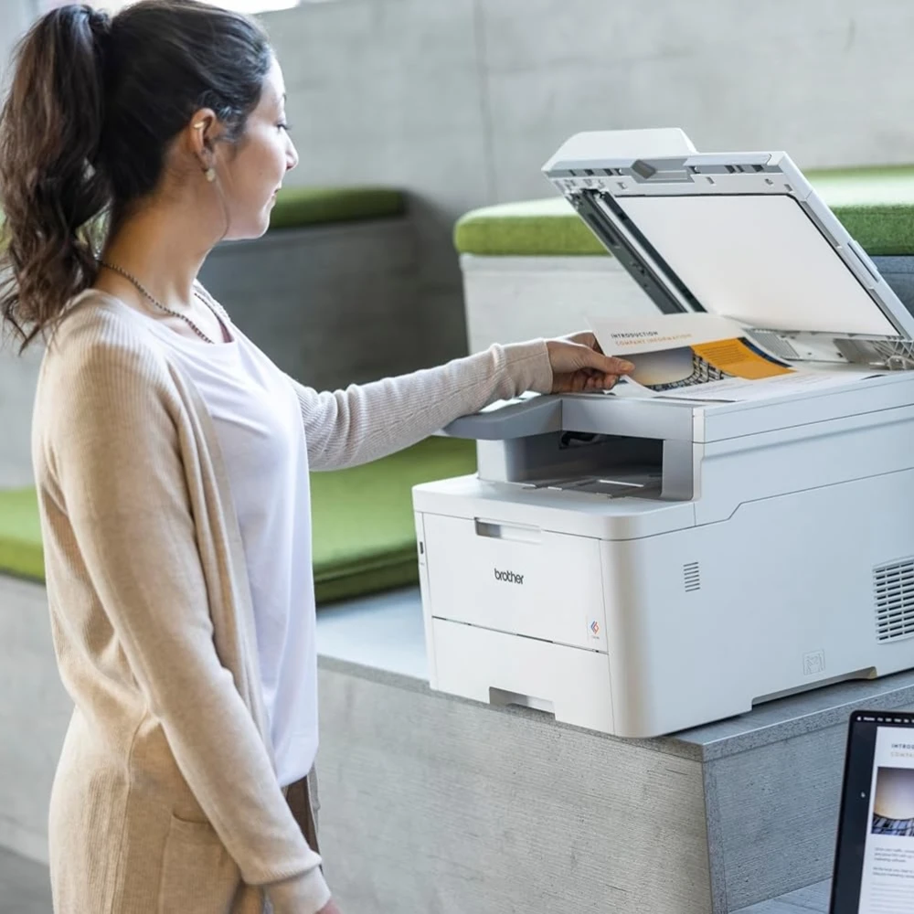เครื่องปริ้น BROTHER MFC-L3760CDW • เครื่องปริ้นเลเซอร์สี และขาว-ดำ สูงสุด 26 หน้าต่อนาที (A4) • มัลติฟังก์ชั่น ปริ้น/ถ่ายเอกสาร/สแกน/แฟ็กซ์ • จอ LCD สี ขนาด 3.5 นิ้ว แบบสัมผัส Touch Panel ทำให้ใช้ง่าย • หน่วยความจำ 256 MB ระบบการพิมพ์เอกสาร 2 หน้าอัตโนมัติ • รองรับการเชื่อมต่อทั้ง WiFi, AirPrint, Mopria, WiFi Direct, LAN และ USB 2.0 • มีถาดบรรจุกระดาษ 250 แผ่น ช่องป้อนกระดาษอัตโนมัติ 50 แผ่น • ถาดรับกระดาษ 150 แผ่น ช่วยลดความถี่ในการเติมกระดาษ • ความละเอียดในการสแกน 1200 x 1200 dpi (optical) • ความละเอียดในการถ่ายเอกสาร 600 x 600 dpi • รองรับแอปพลิเคชัน Mobile Connect